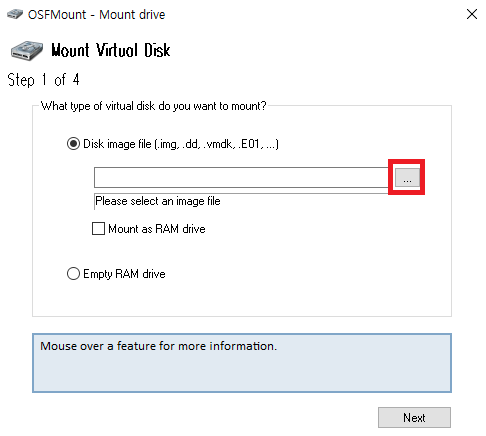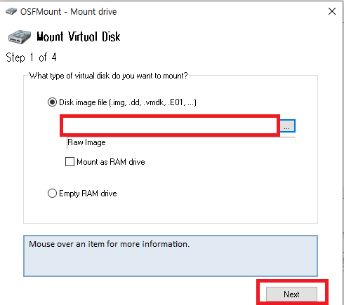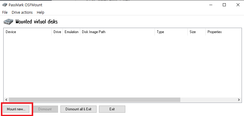 2번의 osfmount.exe를 설치하고 실행 후 Mount New를 선택합니다.