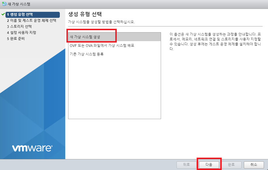 새 가상 시스템 생성을 선택하고 다음을 누른다.