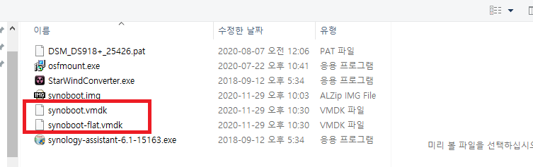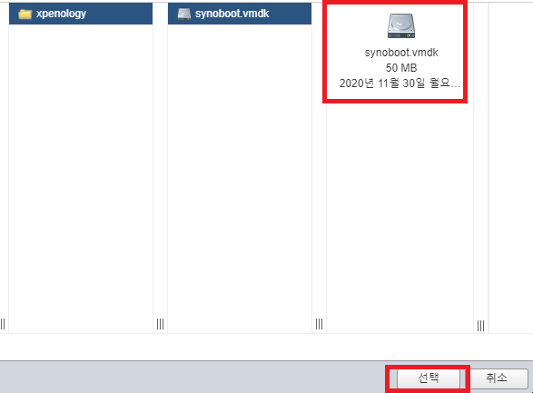 파일을 모두 업로드해도 synoboot.vmdk파일만 표시가 된다.