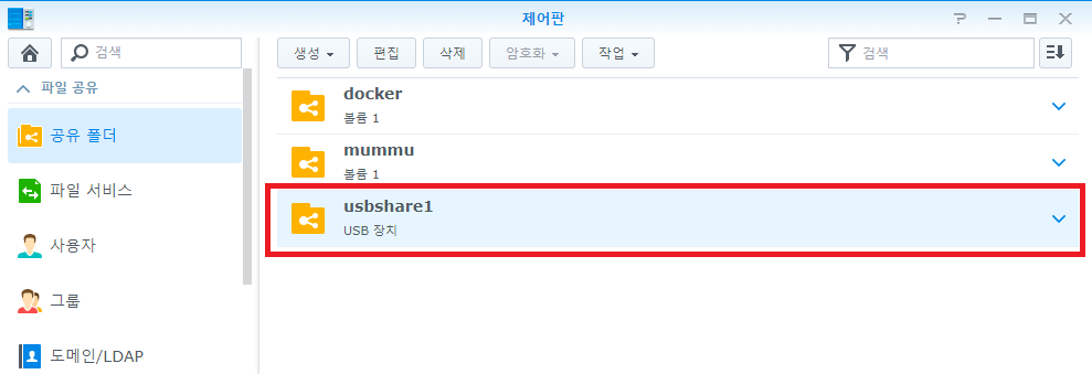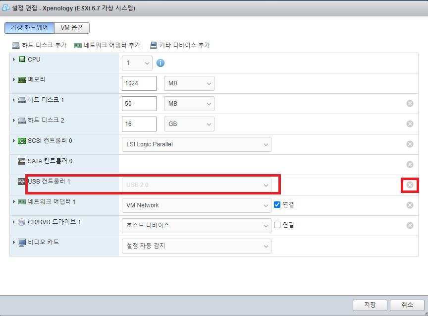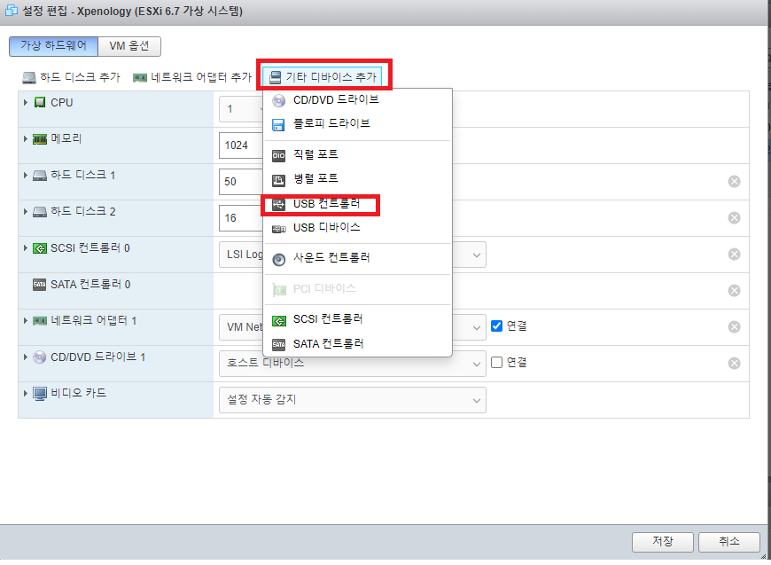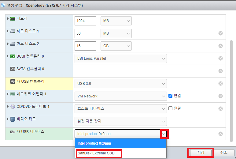 가상시스템의 전원을 켜고 Xpenology의 관리페이지로 이동하여 확인해보면, USB 장치가 추가된 것을 볼 수있습니다.