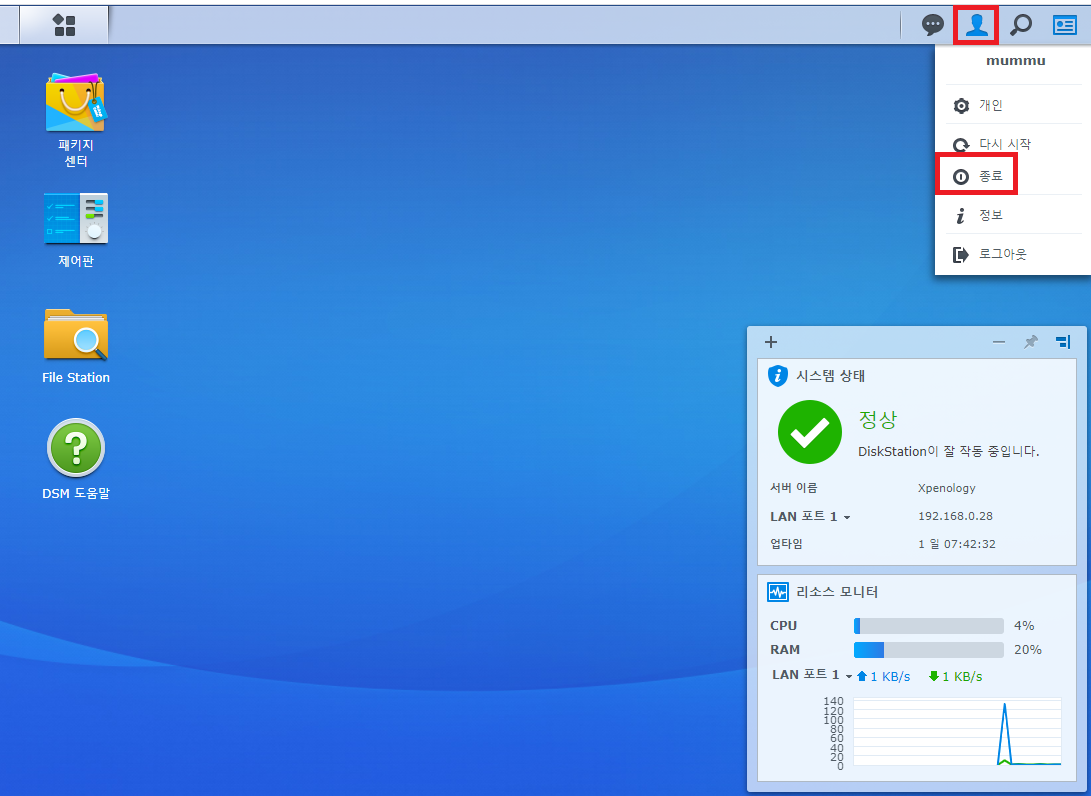 설치된 Xpenology의 IP주소를 입력해 DSM에 접속하고,