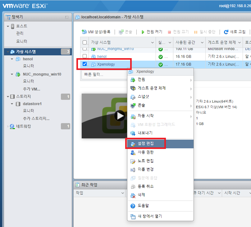 가상시스템에 우클릭후 설정 편집은 누릅니다.