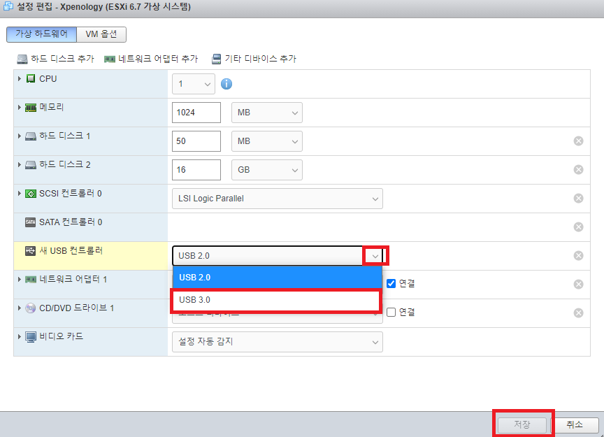 USB 3.0을 설정하고 저장을 눌러줍니다.