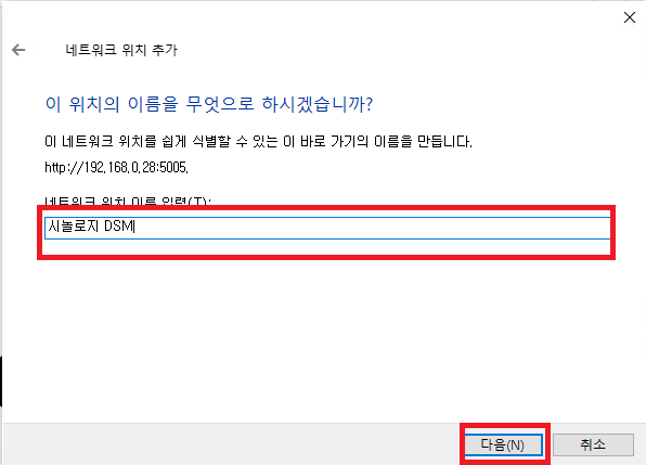 네트워크 위치 이름에 원하는 이름을 입력 후 다음을 누릅니다.