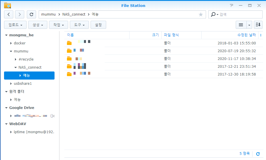이렇게 마운트 하는 방식의 장점은 시놀로지 NAS의 공유폴더로 외부 NAS의 폴더를 관리할 수 있다는 점입니다.