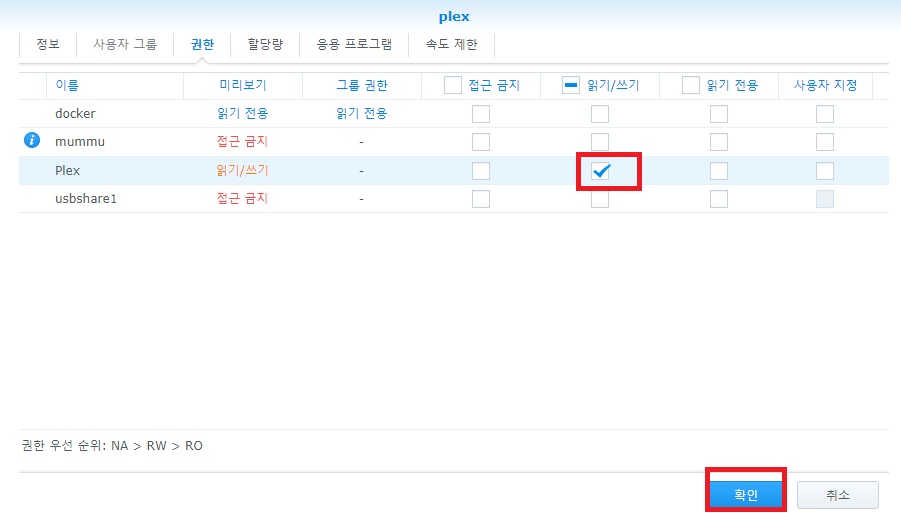 권한을 읽기/쓰기로 바꿔주고 확인을 누릅니다.