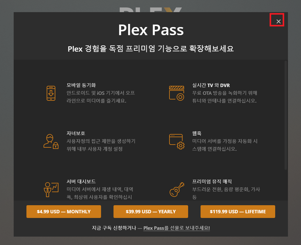 유료멤버쉽관련 팝업은 X를 눌러서 꺼줍니다.