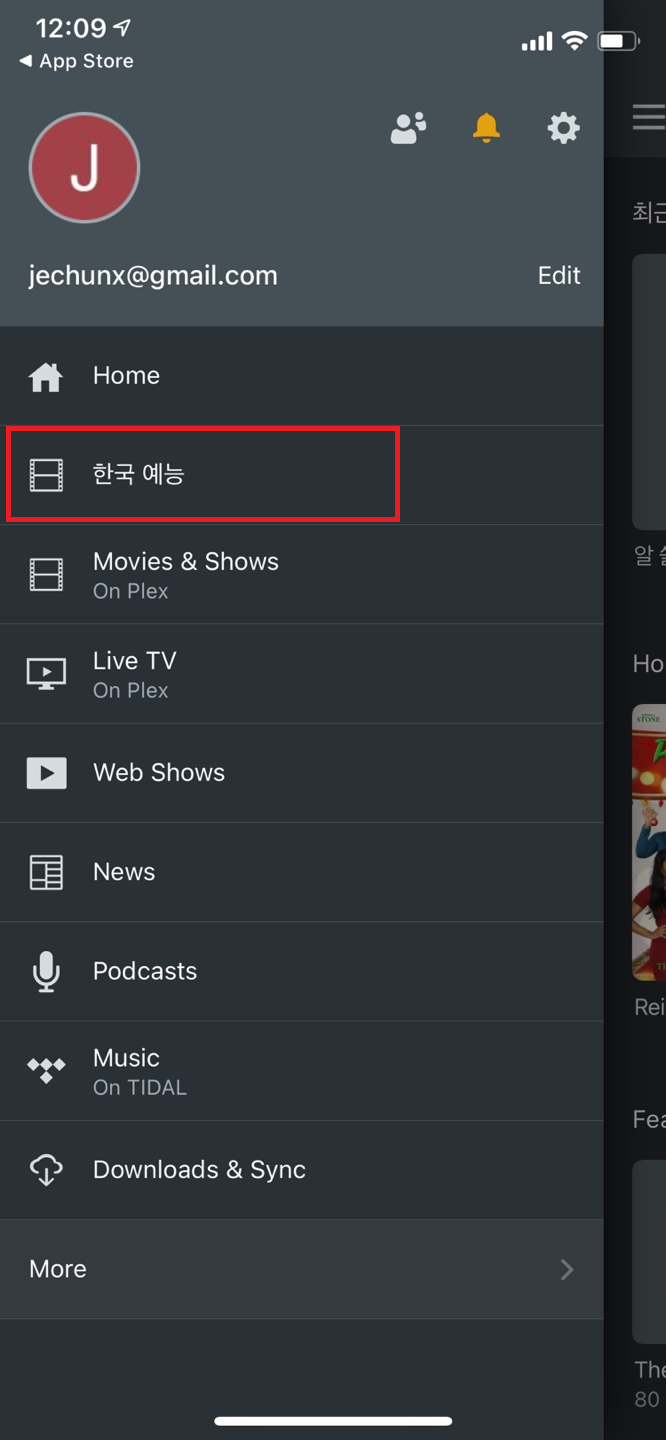 스마트 폰에 Plex 앱을 설치 후 실행 합니다.
