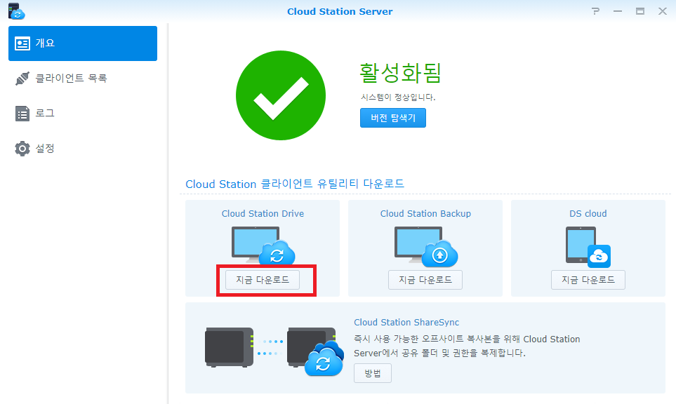 Cloud Station Drive를 다운로드 후 설치해 줍니다.