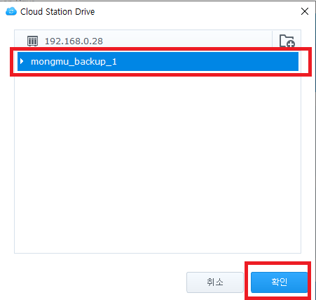 활성화 시킨 폴더를 선택하고 확인을 누릅니다.