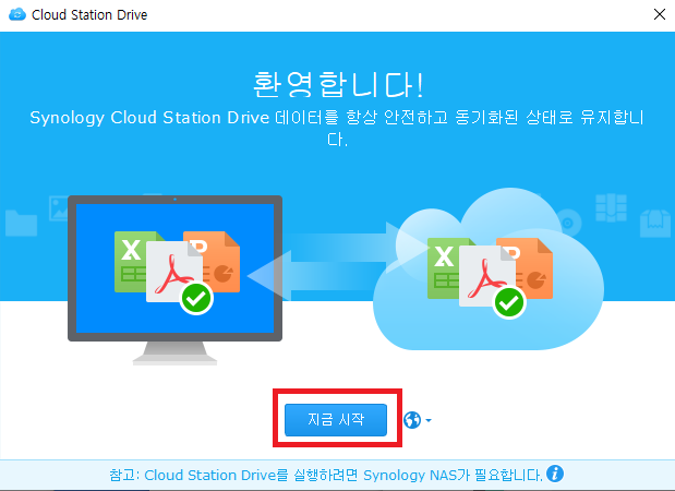 설치된 Cloud Station Drive를 실행 후 지금 시작을 누릅니다.