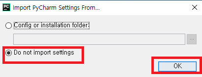 설정 화면 import화면이 나오면, Do no import Setting을 체크하고 다음을 누릅니다.