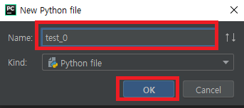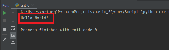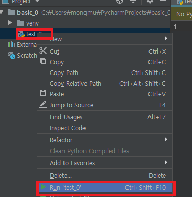 코드 작성이 완료되면 파일명에 우클릭 후 Run "test_0"를 누릅니다.