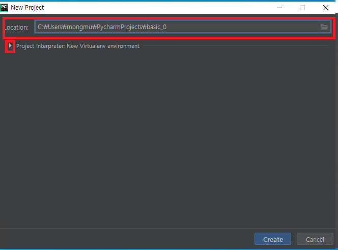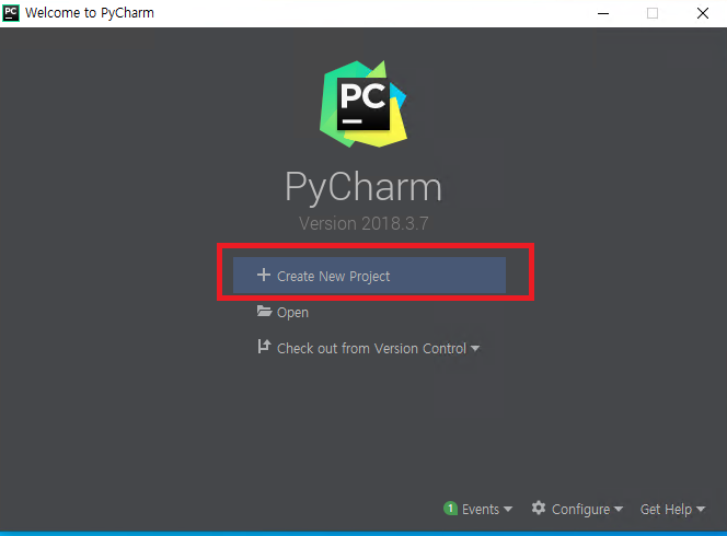 퍄이참이 실행되면 Creat New Project를 누릅니다.