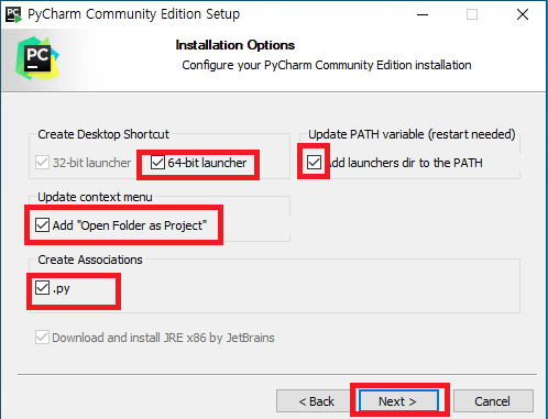 체크박스들을 모두 체크해 주고, Next를 누릅니다.
