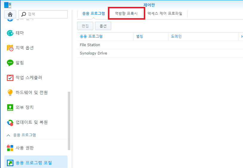 역방향 프록시를 누릅니다.