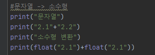 결과를 보면 문자열 "2.1"이 소수형으로 변환되어 덧셈이 된 것을 알 수 있습니다.