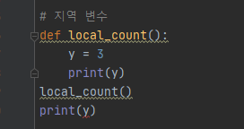 아래의 코드처럼 y는 local_count()라는 함수의 내부에서 선언되어진 변수로써