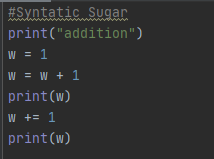 아래와 같이 축약된 연산자를 사용할 수 있게 하는 것이 바로 Syntatic Sugar입니다.