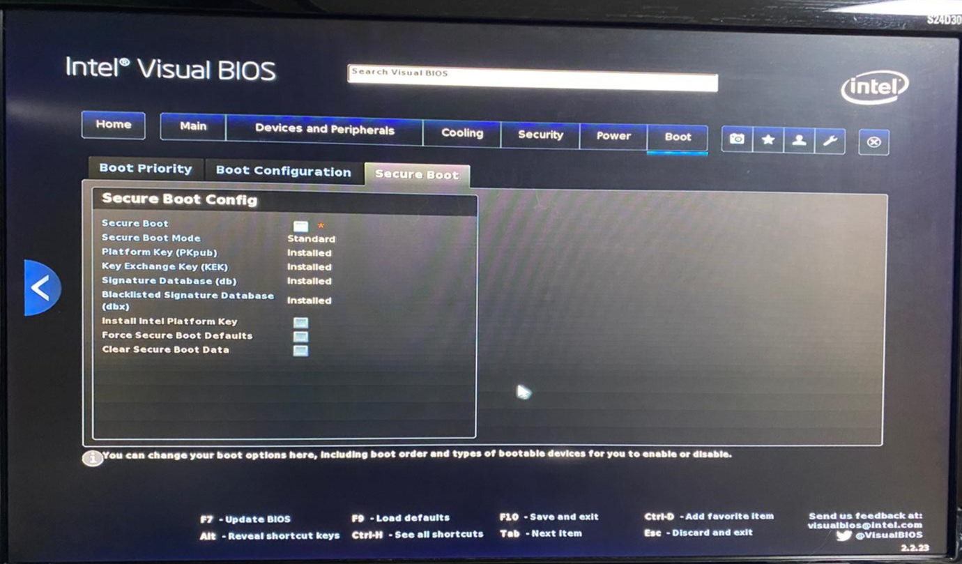 CMOS에서 Secure Boot의 체크를 해제합니다.
