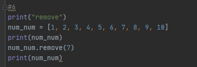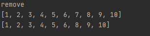 1에서 10까지의 요소를 가지고 있는 리스트에 대해서 remove를 통해서 7을 삭제하는 코드입니다.