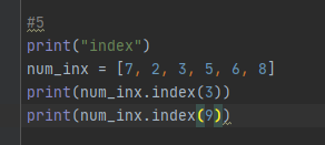 결과를 보면, 3의 경우는 num_inx에 있으므로 인덱스 위치인 2가 출력되었고,