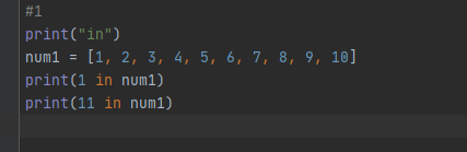 in은 특정 요소가 리스트 내부에 존재하는지를 알려주는 메소드입니다.