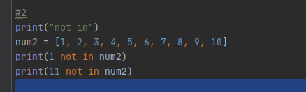 11은 리스트 num1 내부에 존재하지 않으므로 True가 출력됩니다.
