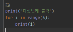 파라미터가 2개인 바로 위의 코드와 다르게 range문에 파라미터가 6 만 들어가 있습니다.