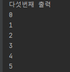 실행 결과를 보면 위의 코드와 다르게 0부터 5까지의 값이 순차적으로 출력되고,