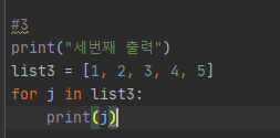 실행 결과를 보면 list1의 요소들이 변수 i에 대입되어서, 요소가 모두 출력된 것을 알 수 있습니다.